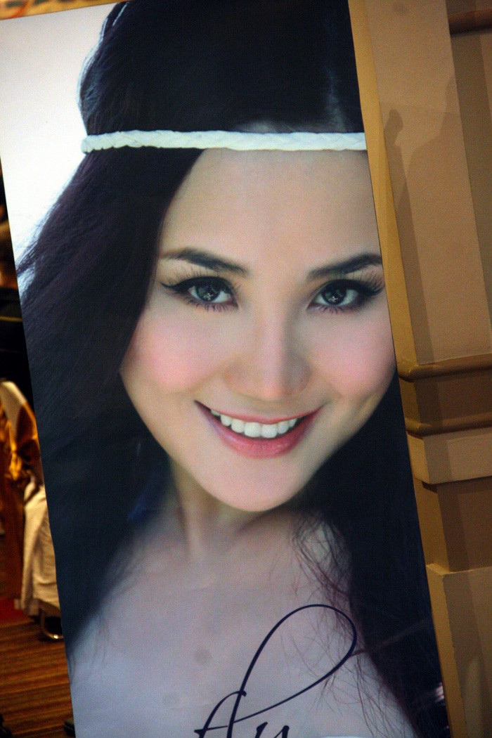 | Vy Oanh tươi tắn và hạnh phúc trong buổi họp báo tại Hà Nội. |
