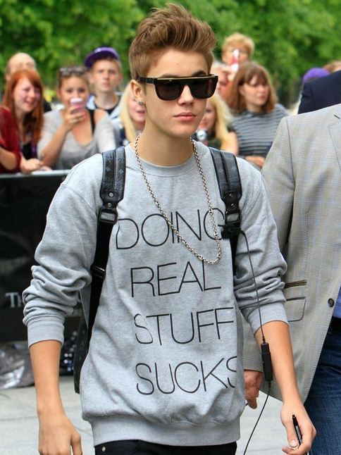 | Justin Bieber xuất hiện rất giản dị trên đường phố Berlin, Đức với cặp kính xì tin cùng trang phục giản dị thường ngày: áo phông, quần jeans. |