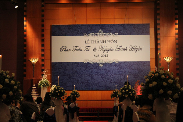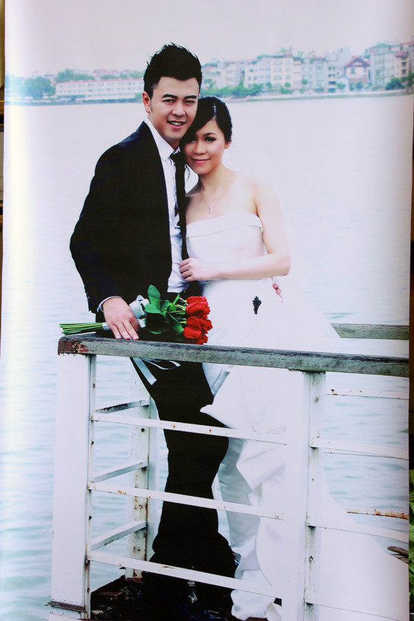 | Trước khi lễ cưới bắt đầu, ca sĩ Phan Anh - anh trai của Tuấn Tú - là người chính tay treo ảnh cưới của em trai trước phòng tiệc. |