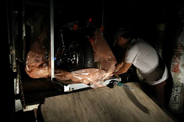 | Chiếc mô tô được chuyên chở về nhà. |