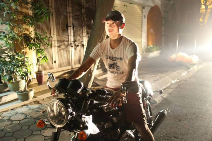 | MC Anh Tuấn dường như rất phấn khích khi anh ghi lại từng khoảnh khắc bên chiếc mô tô "cưng" của mình. |