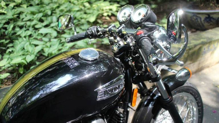 | Hình ảnh chiếc môtô Triumph của MC Anh Tuấn khi tới sân bay Tân Sơn Nhất ngày 17/9. |