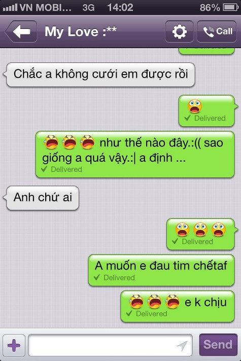 Tiếp đó, người yêu tin đồn đăng tải tin nhắn giữa Bảo Phương và Cao Thái Sơn. Trong đó, nam ca sĩ Con đường mưa viết: "Chắc anh không cưới được em rồi" và xác nhận người trong ảnh là mình.
