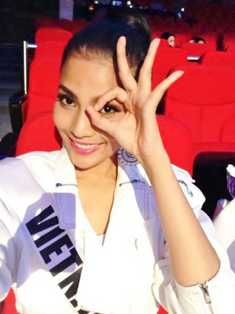 | Tại đêm chung kết của cuộc thi Hoa Hậu Hoàn Vũ 2013 diễn ra vào tối 9/11 theo giờ Nga dù không lọt vào Top 16 người đẹp nhất cuộc thi, nhưng có thể thấy nụ cười thân thiện lúc nào cũng thường trực trên môi cô |