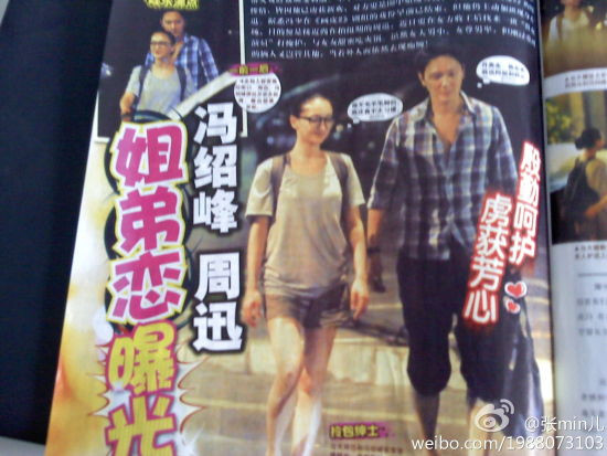 Gần đây cư dân mạng Trung Quốc không khỏi xôn xao khi 1 blogger nổi tiếng tại nước này là Trương Min Nhi đăng tải hình ảnh Châu Tấn thân mật với bạn diễn mới của cô trong bộ phim Họa Bì 2, nam diễn viên Phùng Thiệu Phong. Cùng với bức hình này, người viết còn kèm theo lời nhắn: “Tôi đau lòng quá. Các fan hâm mộ cũng rất đau lòng… Chuyện tình Phùng Thiệu Phong, Châu Tấn bị phát giác rồi. Oh, No!”.