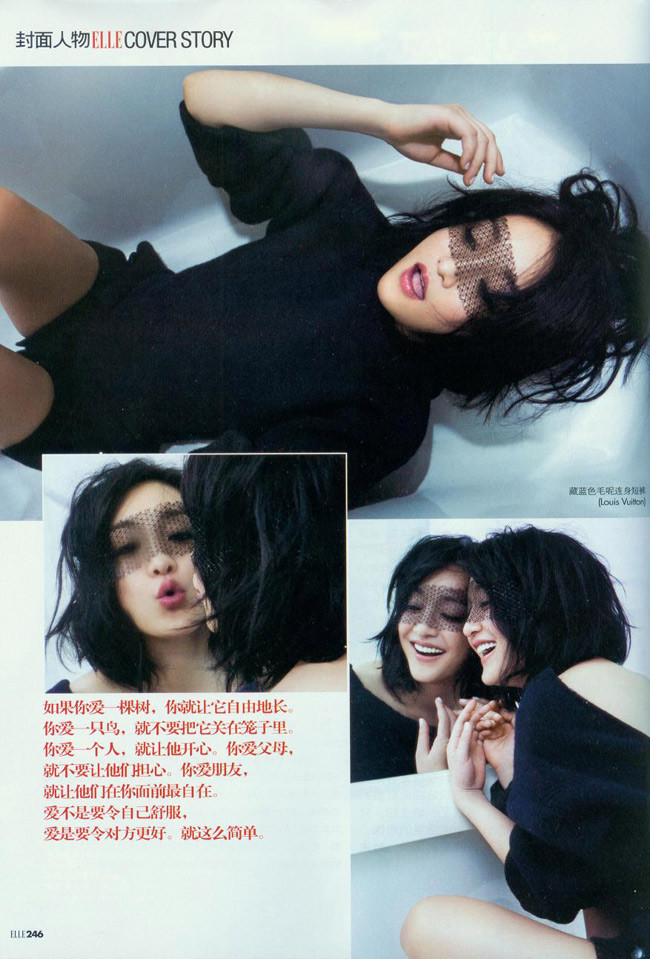 | Xuất hiện trên trang bìa của Elle nhân dịp kỷ niệm 23 năm ngày ra mắt tạp chí danh tiếng này, nàng Tiểu Duy xinh đẹp trong Họa bì đã đem đến cho người xem những cảm giác vô cùng mới lạ về 1 Châu Tấn ngọt ngào, cá tính. |