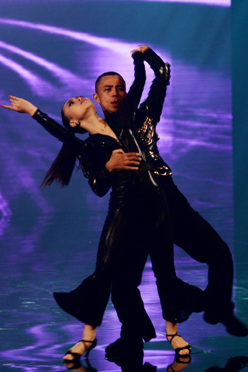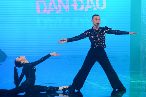 | Cặp đôi cũng không quên thể hiện một màn khiêu vũ đặc sắc trên sân khấu khi Chí Anh tình nguyện hóa thân thành một anh robot. |