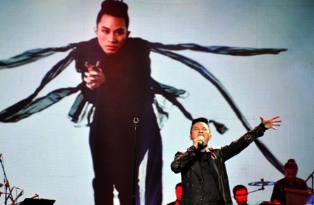 Tùng Dương thể hiện Chiếc khăn Piêu trên sân khấu BHYT.