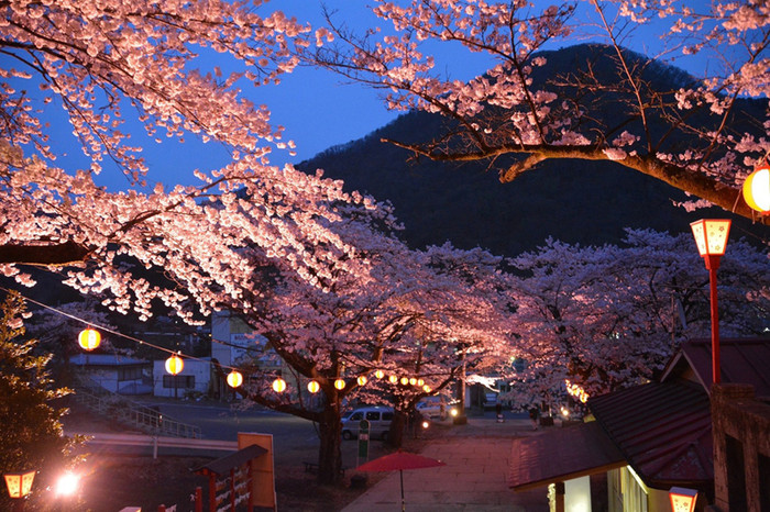 Hoa anh đào quanh đền Onsen và đền Gokoku - một trong những điểm ngắm hoa anh đào tại Kinugawa Onsen, đến đây vào buổi tối, du khách sẽ được chiêm ngưỡng màn thắp sáng vô cùng tuyệt vời.