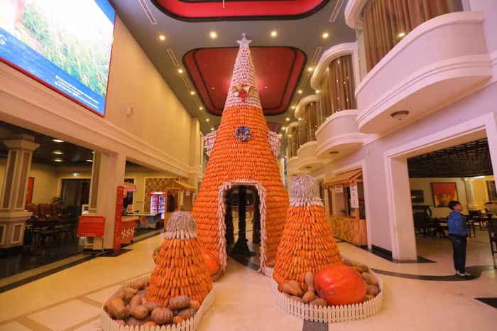 … là cây thông ngô cao 9 mét, kết từ 9000 bắp ngô vàng óng ả đặt khuôn viên Ga đi cáp treo thể hiện ý nghĩa về sự no đủ, vốn đã trở thành dấu ấn riêng của Lễ hội mùa đông Sun World Fansipan Legend những năm qua.