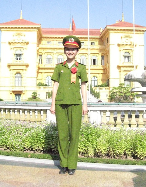 | Không chỉ có vẻ đẹp mạnh mẽ, cá tính, những chiến sỹ áo xanh còn toát lên nét đẹp quyến rũ, nữ tính trong bộ đồ cảnh phục. |