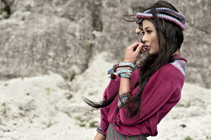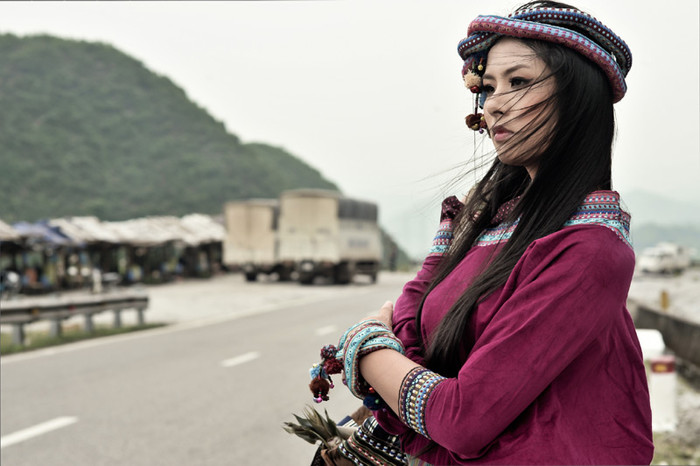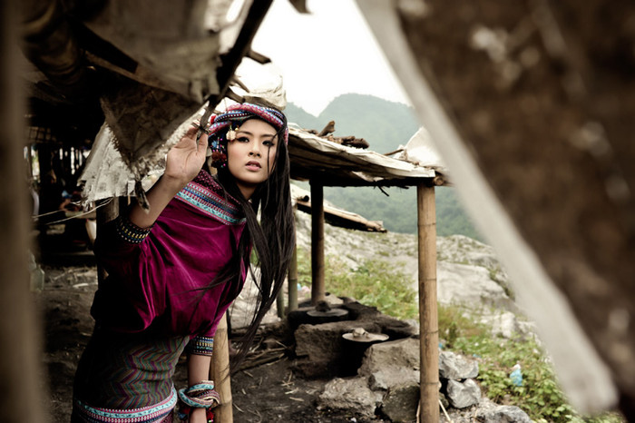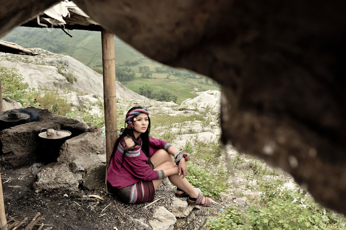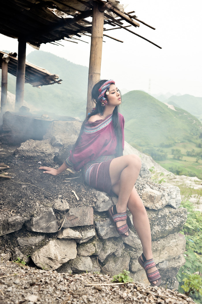 (GDVN) - Đầu quấn khăn, lưng đeo gùi, Hoa hậu Ngọc Hân hóa thân thành cô nàng du mục cá tính, "bụi bặm", ấn tượng trong bộ ảnh mới. Trang điểm: Quốc Hưng - Nhiếp ảnh: Bùi Việt Anh - Trang Phục: NTK Minh Hoa