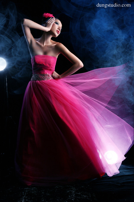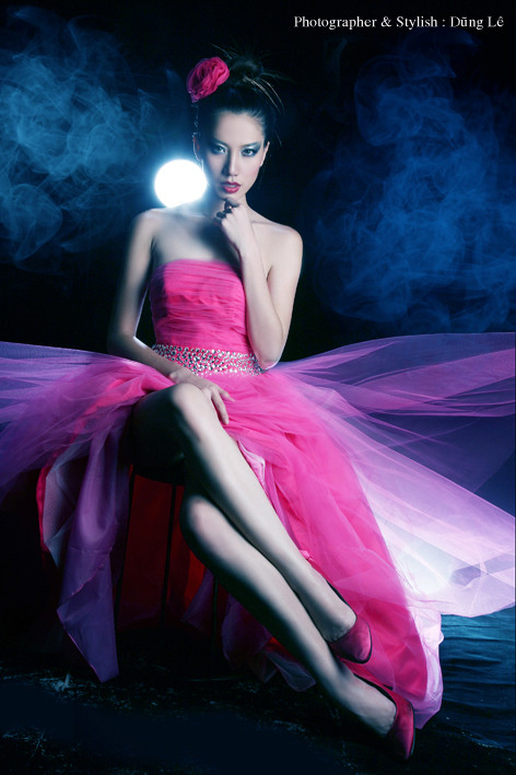 (GDVN) - Dưới góc máy của nhiếp ảnh gia Dũng Lê, người mẫu Chung Thục Quyên lạnh lùng khoe sắc trong khói sương huyền ảo.