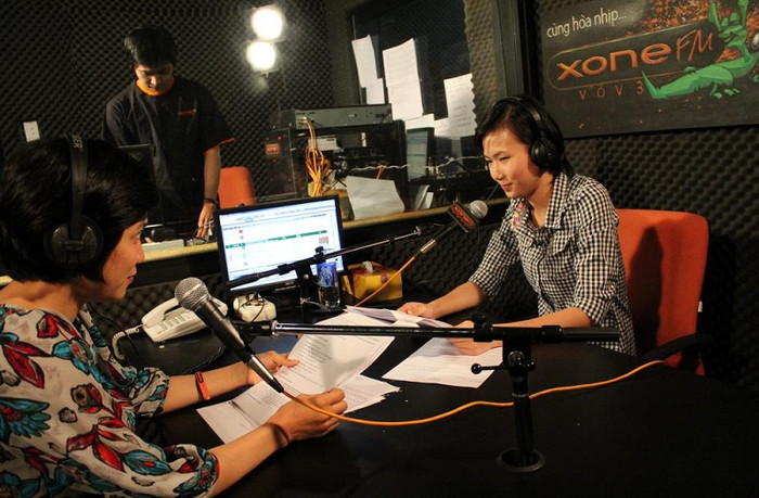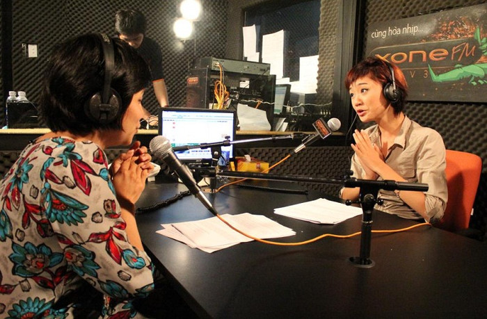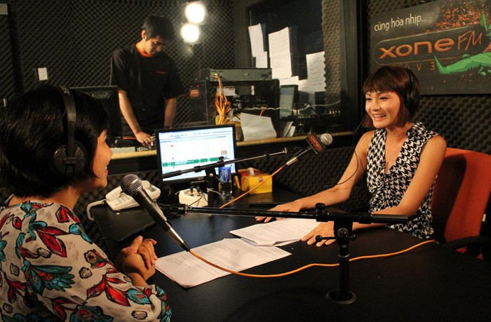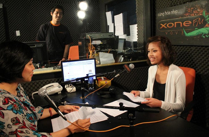 | Trong tập 10 của chương trình Vietnam’s Next Top Model được phát sóng vào 20h chủ nhật 04/12/2011, 8 gương mặt sáng giá nhất của Vietnam’s Next Top Model 2011 sẽ “đại náo” đại bản doanh của Xone FM khi hóa thân thành những cô nàng MC trẻ trung, duyên dáng. Trong ảnh: Lê Thị Phương ngồi trước máy thu thanh. |