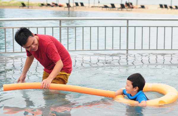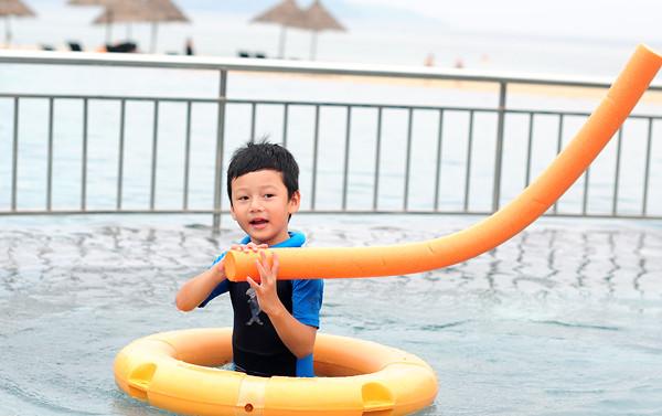 | Trong dịp Jennifer Phạm vào Đà Nẵng để đảm nhận vai trò MC cho đêm chung kết Hoa hậu Việt Nam 2012, Bảo Nam cũng có những ngày vui đùa thỏa thích. Cậu bé rất thích nghịch nước và ngày nào cũng đòi mẹ cho đi bơi. |