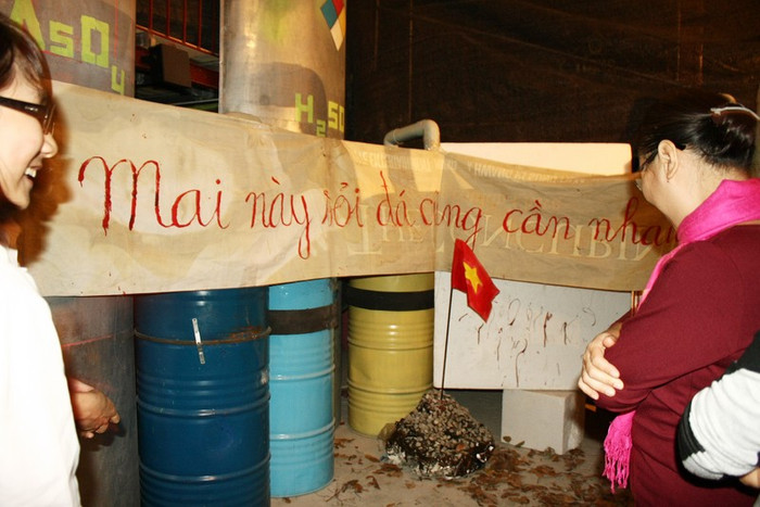 | Các bạn trẻ đang giới thiệu về ý tưởng của câu khẩu ngữ "Mai này sỏi đá cũng cần nhau" cho một vị phụ huynh. |