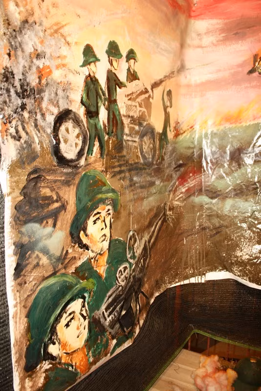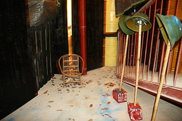| Mô hình máy bay Mỹ ném bom phía trên đầu. |
