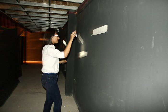 | Còn lại là sinh viên đến từ các trường: Đại học Ngoại Thương, ĐH KTQD, Đại học KHXHNV, Học viện báo chí tuyên truyền, Học viện ngoại giao, Đại học Kinh doanh Công nghệ HN, ĐH Hà Nội, ĐH Công nghiệp HN, ĐH FPT, ĐH RMIT, cùng 3 bạn ĐH Kiến trúc & 2 bạn ĐH Mỹ thuật. Có 9 bạn sinh năm 96 là ít tuổi nhất và 1 bạn sinh năm 89 là lớn tuổi nhất ban tổ chức. Mọi thành viên trong BTC cùng góp ý tưởng và xây dựng nên mê cung. Ảnh là Diệu An, chủ nhiệm Dự án Nghệ thuật cộng đồng Lần Hồi. |