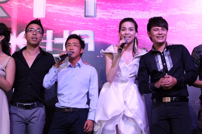 | Cường đô là cũng hòa giọng hát chúc mừng một buổi tiệc thật ý nghĩa. Các ca sĩ từng gắn bó với Hà Hồ như VMusic (bên phải), nhạc sĩ Nguyễn Hồng Thuận (thứ hai từ trái sang) và Tiêu Châu Như Quỳnh cũng không thể thiếu. |