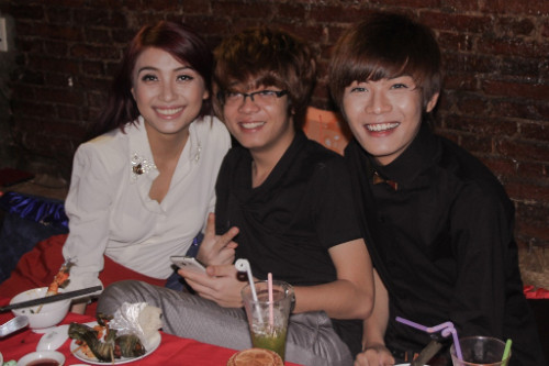 | Như một thông lệ, sau những vòng thi khá căng thẳng, Hồ Ngọc Hà và các học trò cưng của mình thường tổ chức những buổi tiệc ăn uống để thư giãn và nạp lại năng lượng. Đêm qua, nhân dịp sinh nhật của Phương Uyên, nữ huấn luyện viên đã rủ ông xã Cường Đôla và team của mình tham gia cùng. Trước đó, vị thiếu gia này cũng đến tận trường quay Giọng hát Việt để cổ vũ cho vợ. Cặp đôi ăn diện khá đơn giản khi góp mặt ở buổi tiệc sinh nhật ấm cúng này. |