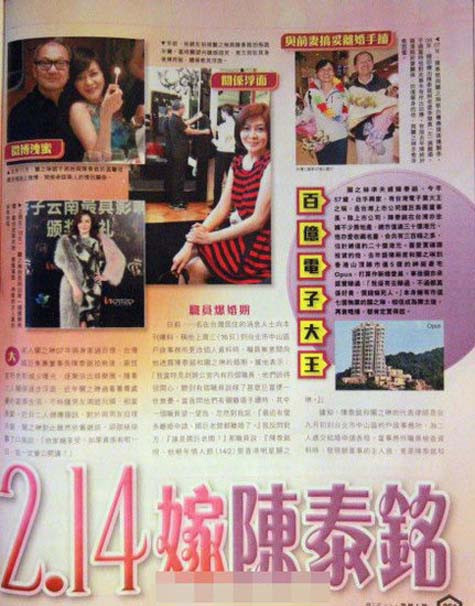 Mới đây, các phương tiện truyền thông Đài Loan (Trung Quốc) tung tin đại mỹ nhân Hồng Kông Quan Chi Lâm và đại gia Đài Loan Trần Thái Minh sẽ chính thức kết hôn vào ngày lễ tình nhân 14/2/2014.
