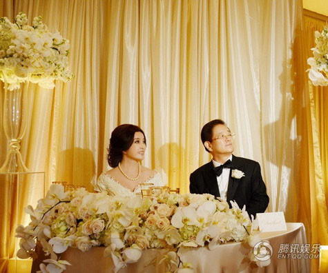 | Đám cưới diễn ra trong khung cảnh rất lãng mạn, cô dâu "ngoại lục tuần" được chú rể 71 tuổi dìu vào lễ đường trong tiếng nhạc dìu dặt của ca khúc " Wedding March". Cặp đôi thề nguyền sẽ yêu nhau mãi mãi. Đây là lần thứ 4 Lưu Hiểu Khánh kết hôn. |