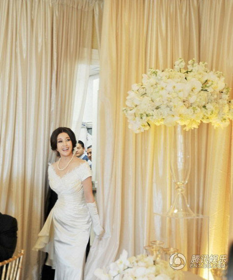 | Ở tuổi 63, Lưu Hiểu Khánh vẫn đẹp rạng ngời khi khoác áo cô dâu. |
