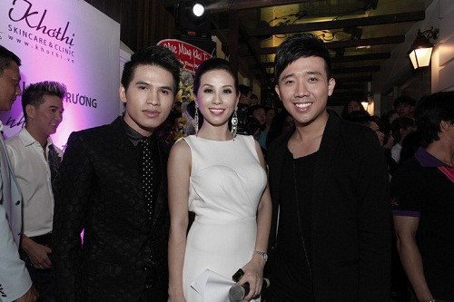 Event thu hút khá nhiều ngôi sao lớn của làng giải trí. MC Thanh Bạch và Trấn Thành cũng xuất hiện với tư cách khách mời để chúc mừng cho người đẹp.