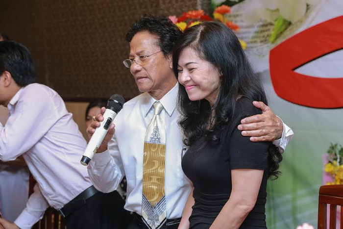 Trong buổi họp fan, Chế Linh lần đầu tiên ôm chặt vai vợ ông, chị Vương Nga, và nói với người hâm mộ rằng, ông vô cùng biết ơn vợ bởi bà đã đồng hành cùng ông suốt 40 năm qua, luôn ủng hộ hết mình và quan tâm lo lắng mọi thứ cho ông để ông được yên tâm cống hiến cho nghệ thuật.