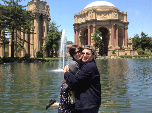 Đúng là đi nửa vòng trái đất mà lại gặp người quen, nhờ công của facebook, facebook muôn năm! Đúng giờ hẹn, Huy đón cả gia đình tôi tại phi trường San Francisco vào lúc 20h30 tối sau khi tôi sợ gần chết vì tưởng phi công bị mắt lác, suýt hạ cánh xuống biển..!