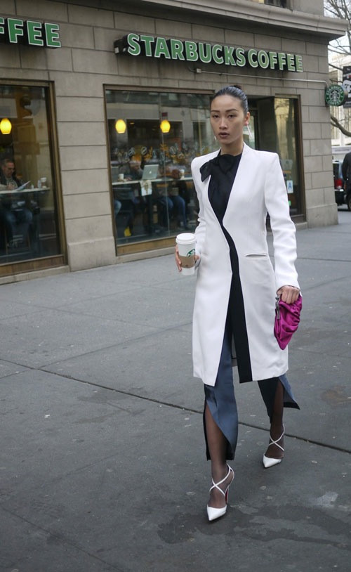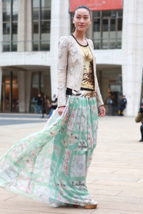 | Thông tin về Huyền Trang chỉ được biết đến qua báo chí nước ngoài, sau khi xuất hiện trên một loạt các trang báo thời trang mạng với phong cách ấn tượng trong 4 ngày diễn đầu tiên, mới đây, tạp chí Harper's Bazaar phiên bản báo mạng lại tiếp tục đăng tải thêm một bức hình street style độc đáo nữa của Huyền Trang |