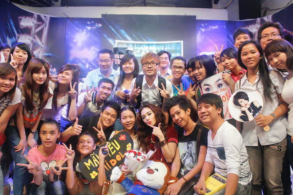 | Ngoài những tâm sự chân thành, Đinh Ngọc Diệp cũng nhiệt tình tham gia các trò chơi cùng fan. |