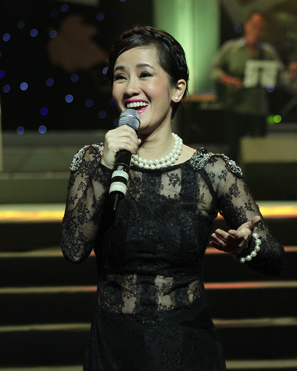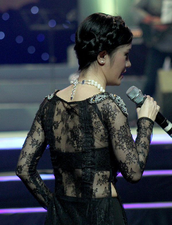 Hồng Nhung đã thu hút khá nhiều sự chú ý của báo giới và khán giả khi xuất hiện với chiếc váy đen bó sát cơ thể, đặc biệt là đường xẻ sâu trước ngực khoe 2 vòng một cách táo bạo.