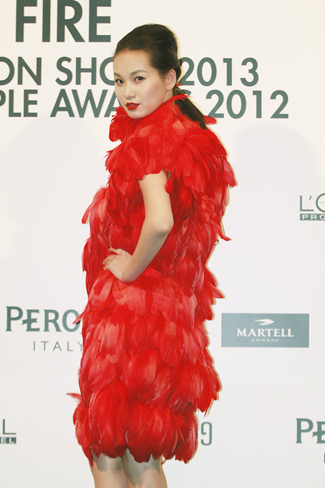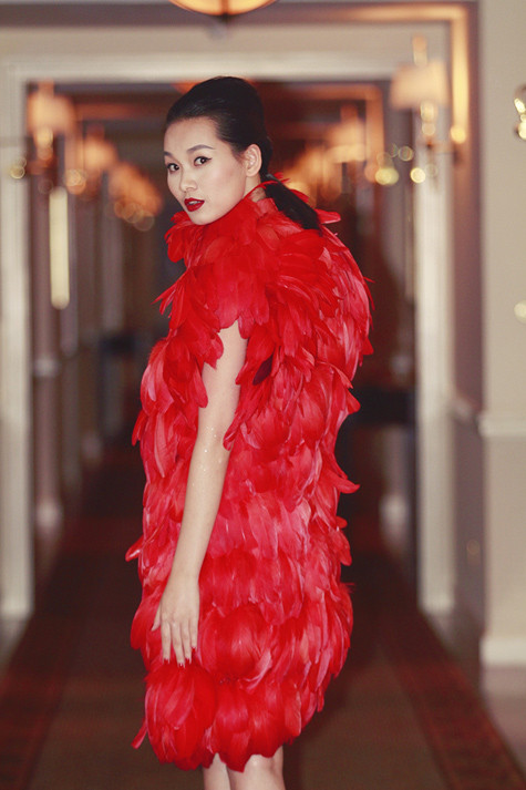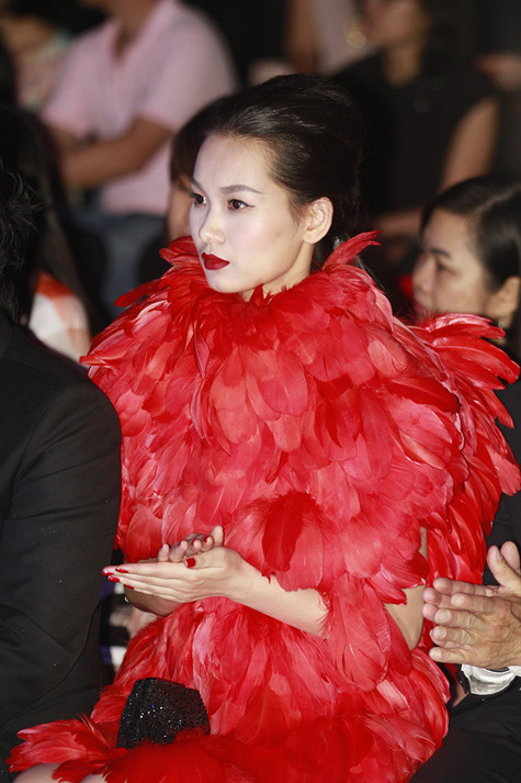 | Chiếc váy đỏ nổi bật của Diệu Hằng do Đỗ Mạnh cường thiết kế. |