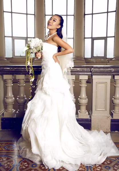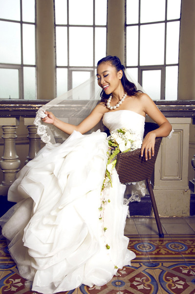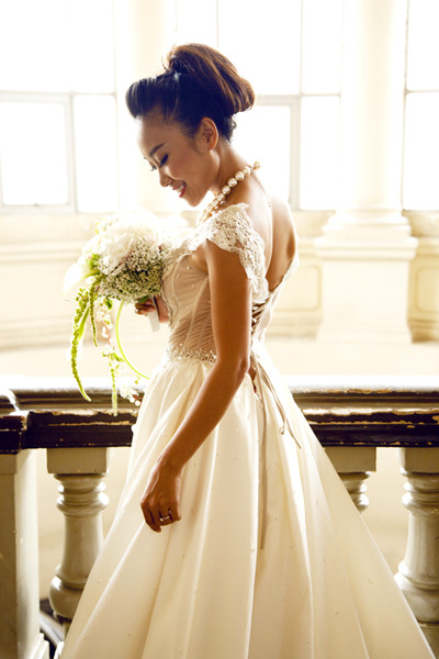 Sau hôn lễ, 'sôcôla' mới xúng xính diện soiree trắng truyền thống, khoe vẻ xinh tươi, lộng lẫy.