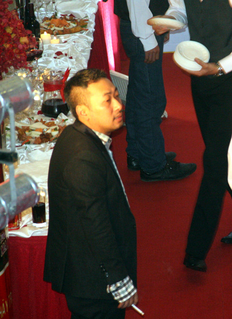 | Anh đứng một mình khá lâu, sau đó mới trở lại nơi tổ chức tiệc nhẹ, chụp ảnh nghệ sỹ. |