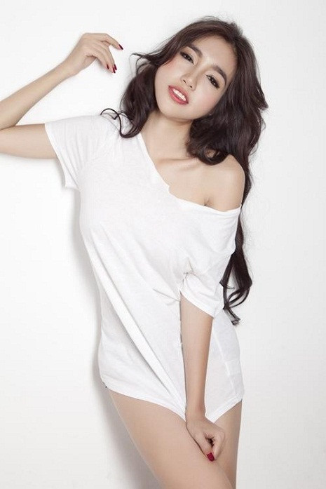 Chỉ với chiếc áo thun trắng, Elly Trần đã tìm cách biến tấu để có được những bức hình đẹp mắt.