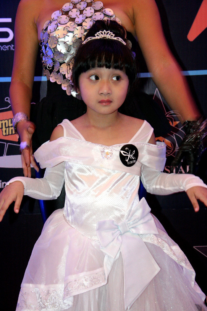 | Đến chúc mừng liveshow mini của chị gái tại Nhà hát Âu Cơ, bé Nhật Anh diện một bộ váy rất đáng yêu. |