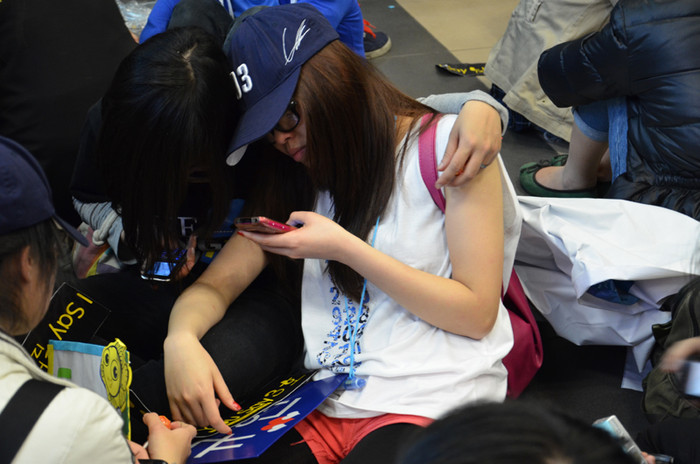 | Mỏi mòn chờ đợi nhưng bóng dáng các sao vẫn "bóng chim tăm cá" khiến nhiều fan nữ không kiềm nổi nước mắt. |