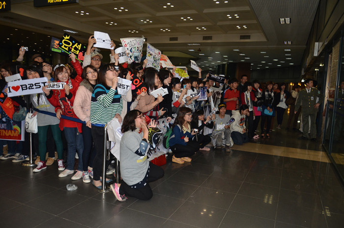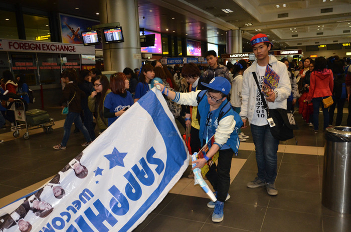 | Dù có thông tin 20h20 chuyến bay của các sao mới hạ cánh xuống Nội Bài nhưng từ 19h, các fan đã “bao vây” tất cả các đường ra của sân bay để chờ đón. |