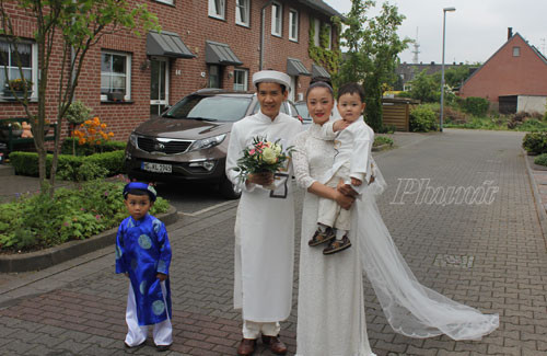 Anh Hoàng Công Phước - chồng Mỹ Duyên lớn lên từ nhỏ tại Đức, nhưng gia đình gốc Huế nên mọi lễ nghi đều phải đúng như một đám cưới truyền thống với trầu cau, áo dài khăn đóng. “Gọi là đám cưới nhưng chúng tôi chỉ làm lễ ra mắt họ hàng nhỏ gọn thôi. Khi về lại Việt Nam, chúng tôi sẽ mời bạn bè thân quen đến chia vui. Chúng tôi đã lên kế hoạch này lâu rồi nhưng vì nhiều lý do khách quan, đến tận bây giờ mới thực hiện được” - anh Hoàng Công Phước giải thích.