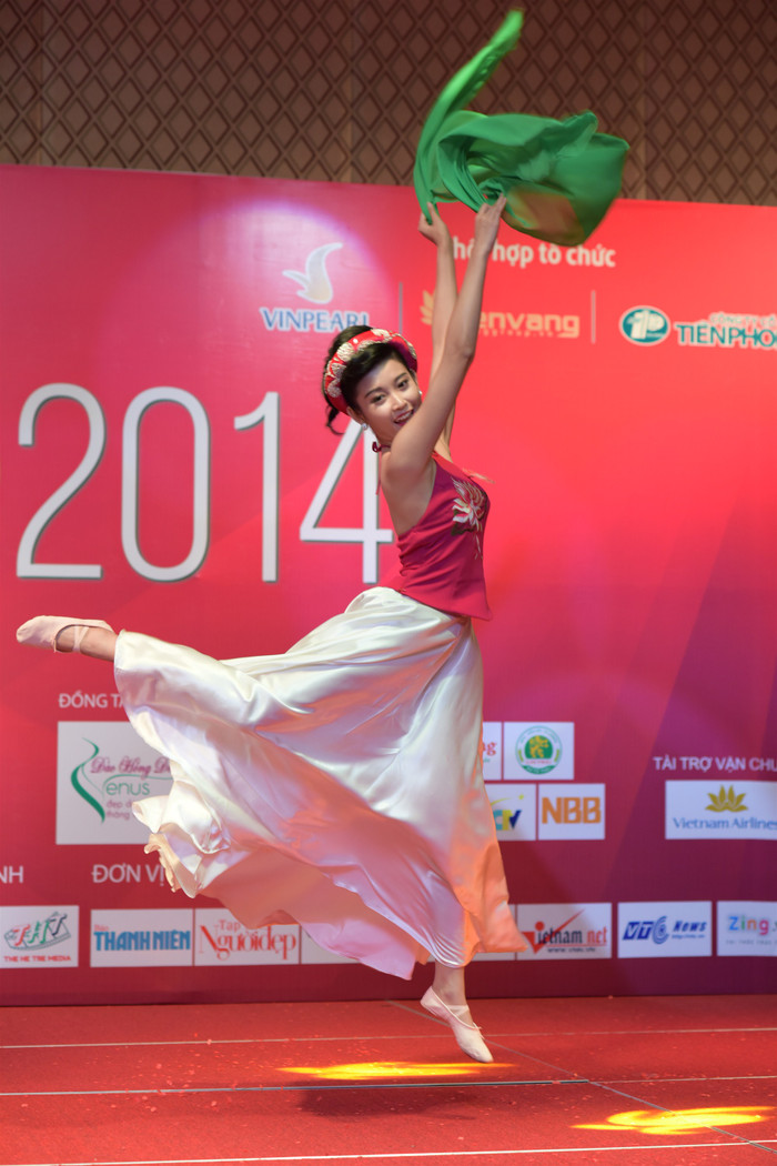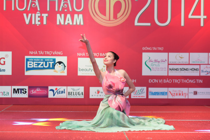 Sau khi kết thúc buổi tập luyện kỹ năng trình diễn cơ bản với trang phục áo dài và dạ hội, tối 27/11 các thí sinh Hoa hậu Việt Nam 2014 đã bước vào phần thi sơ tuyển ‘Người đẹp tài năng’ được tổ chức tại Hội trường Sunrise Ballroom Vinpearl Phú Quốc.