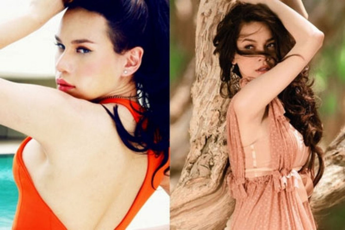 | Với vầng trán rộng, chiếc mũi hếch bướng bỉnh và đôi môi cong hờn dỗi, Franky Nguyễn (trái) khiến nhiều người liên tưởng tới Hồ Ngọc Hà (phải). |