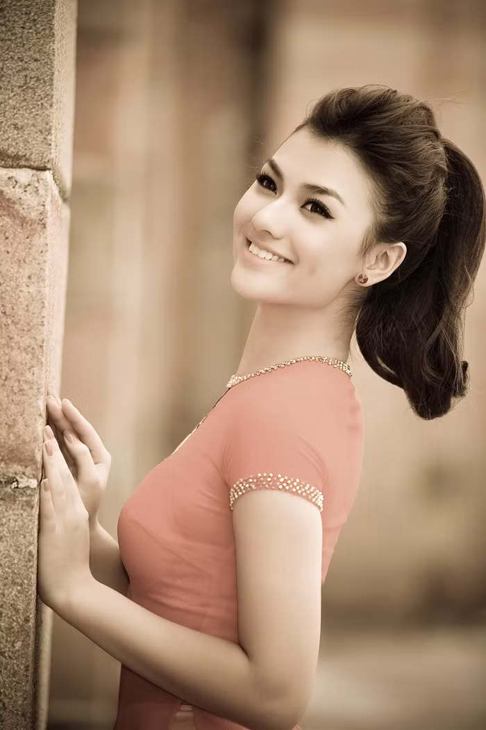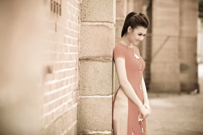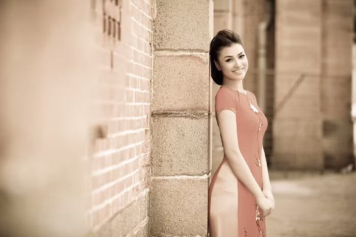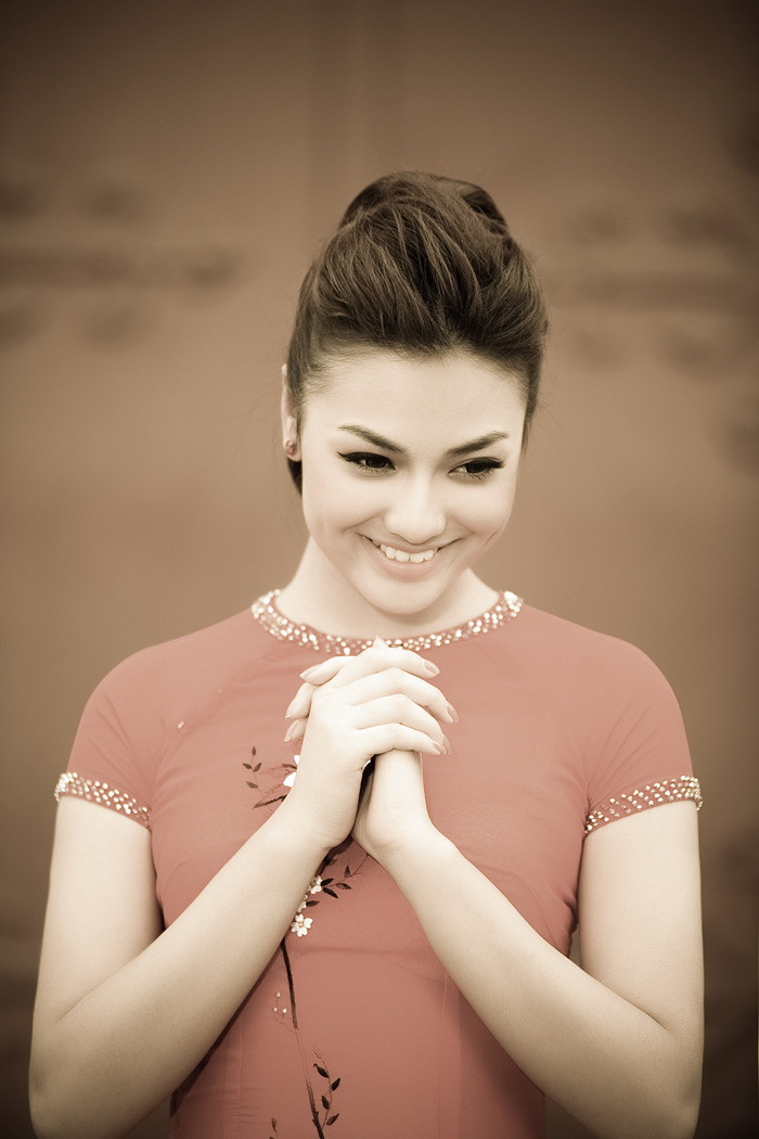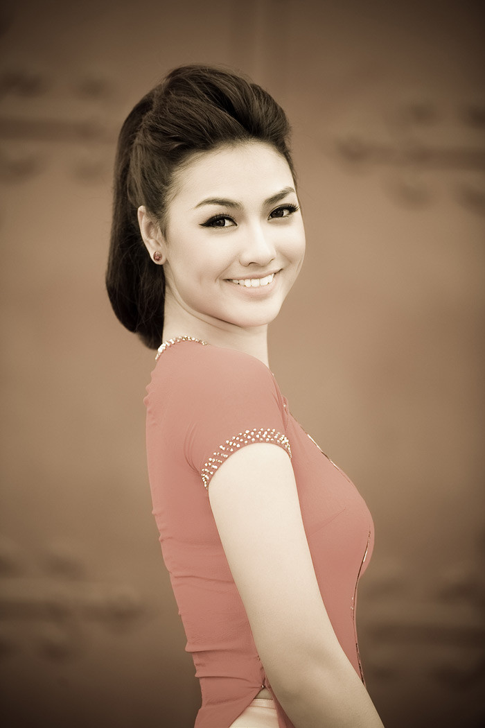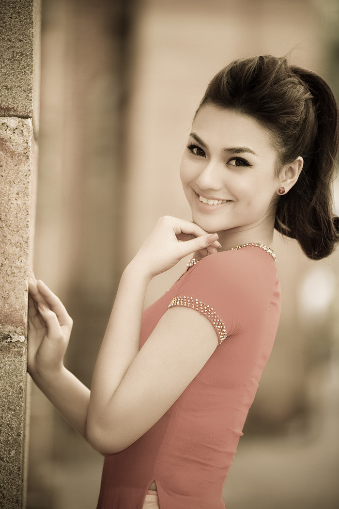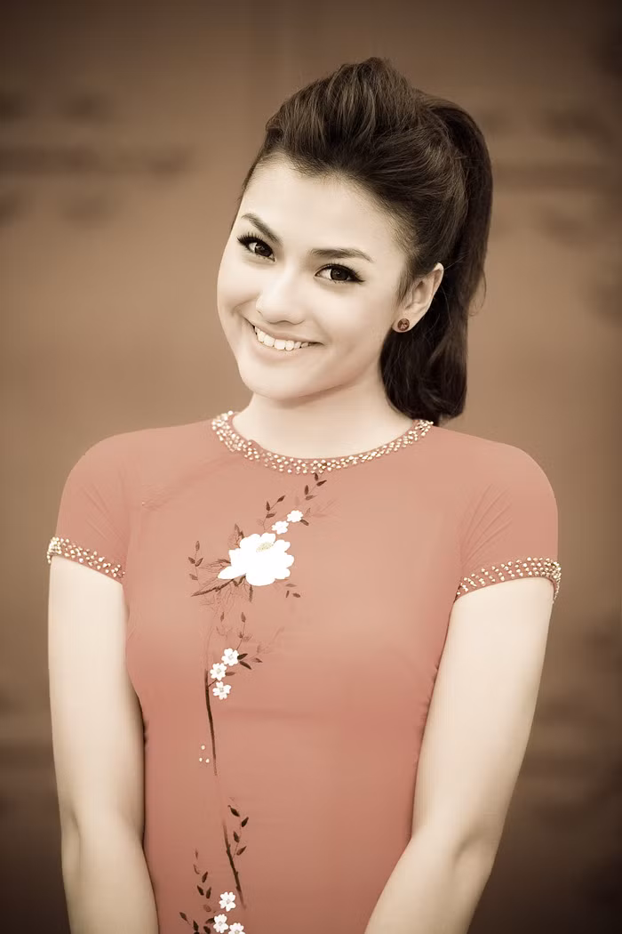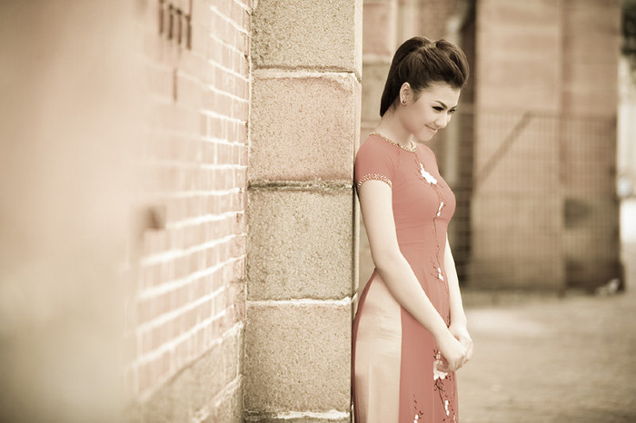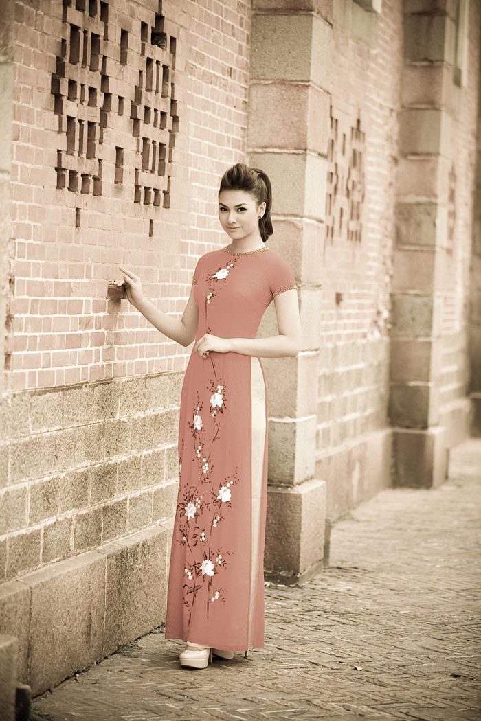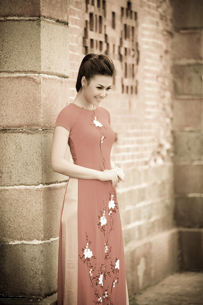 (GDVN) - Người mẫu 18 tuổi Hồng Quế thướt tha, dịu dàng với bộ áo dài truyền thống. Nụ cười duyên dáng và ánh mắt như biết nói trên gương mặt đẹp như trăng rằm khiến người khác phải ngẩn ngơ