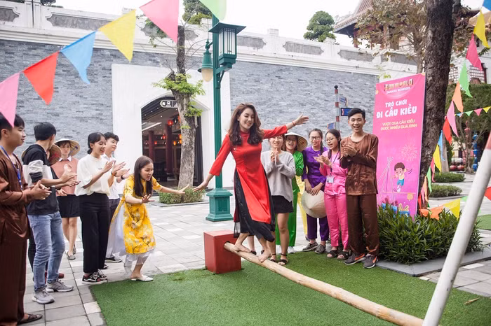 Nghỉ ngơi đôi chút sau khi đã no bụng, du khách lại bị cuốn vào khu vực trò chơi dân gian Việt Nam với những trò chơi đặc trưng ngày Tết như: ném tiêu, kéo co, đi cầu kiều, đi cà kheo… tại khu vực quảng trường.