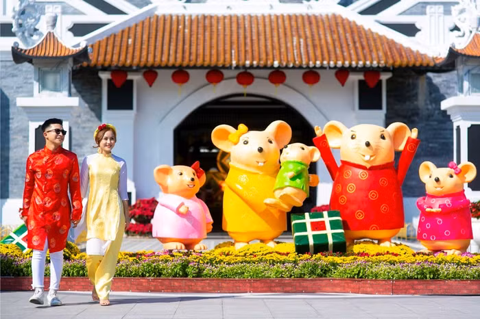 Những hình ảnh ngộ nghĩnh không chỉ là bối cảnh check-in siêu dễ thương cho du khách mà còn thay cho lời chúc gia đình ấm no hạnh phúc gửi tới du khách.