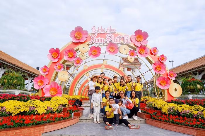 Tiếng nhạc rộn ràng, tươi vui của những khúc ca xuân dẫn lối du khách bước vào không gian lễ hội tràn ngập sắc hoa tại Công viên lớn nhất miền Trung - Sun World Danang Wonders.