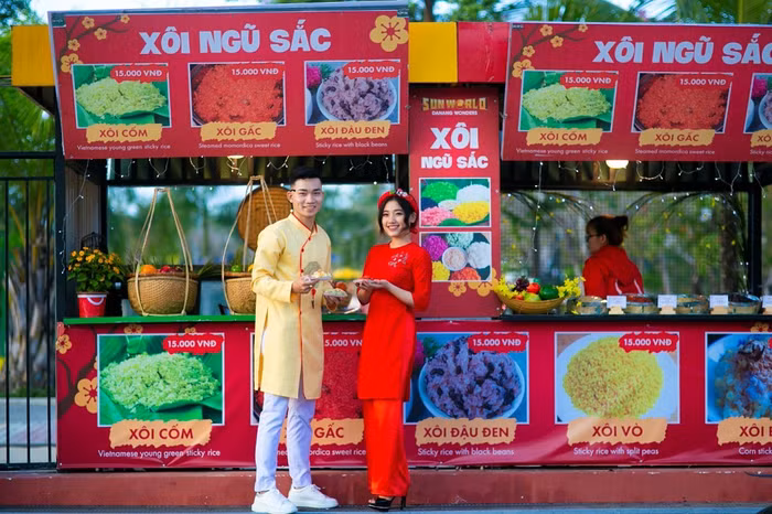 Ấm thực Việt Nam cũng đa dạng không kém với những quầy phở, xôi cốm, xôi vò của miền Bắc, bún bò Huế, mì Quảng, cao lầu miền Trung hay hủ tíu, bánh tráng miền Nam sẵn sàng phục vụ du khách chơi xuân sau khi đã mải miết “check in” với cảnh đẹp nơi này.