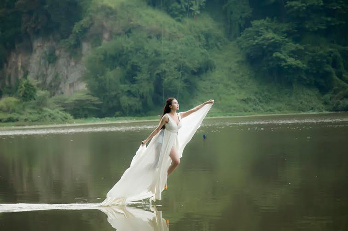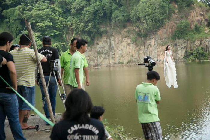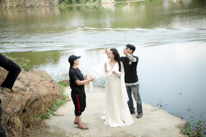Bên cạnh đó, để tạo ra vẻ đẹp hoành tráng nhưng mang màu sắc liêu trai hơn cho MV, Trà Ngọc Hằng không ngại khó ngại khổ khi cùng đạo diễn và ê kip còn đi sâu hơn vào khu thác Pongour nằm rất xa trung tâm của Đà Lạt để tìm những góc quay đẹp mắt.