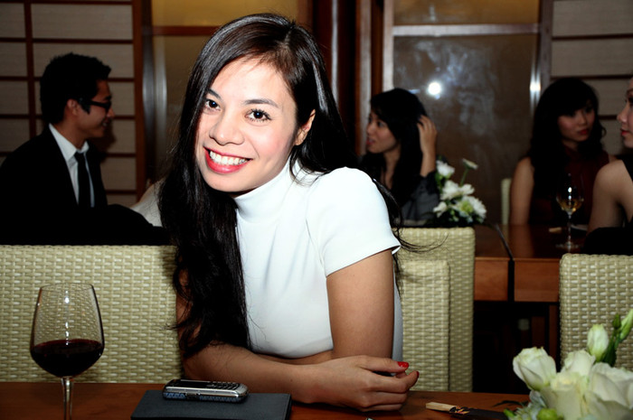 | Diễn viên Minh Hà đến chia vui với HH Dương Thùy Linh. Trông Hoa hậu thân thiện rất "ngọt ngào" trong bộ váy trắng. |